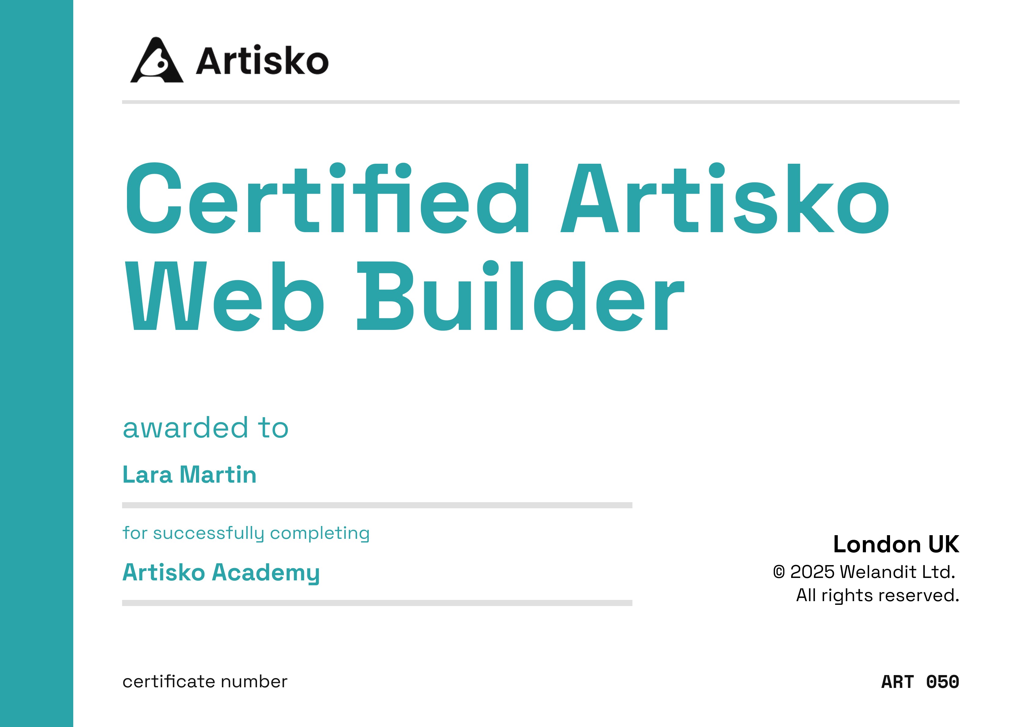 When you complete the 7-Day Build, you’re recognised as an Artisko Web Builder.